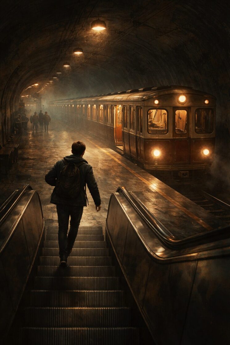 Eskalátory dolů byly delší než předtím. Běžel jsem. Ne proto, že bych chtěl spěchat, ale proto, že jsem cítil, že ten vlak už tam stojí. A skutečně – dole byla souprava. Ne ta běžná. Ta starší. Dveře se už zavíraly.